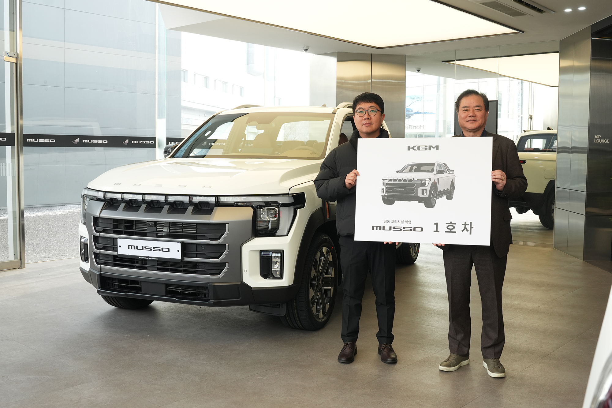 KG모빌리티(이하 KGM)가 새 픽업트럭 ‘무쏘’의 첫 고객 인도식을 열고 본격적인 출고에 돌입했다.20일 KGM에 따르면 지난 19일 KGM 익스피리언스 센터 일산에서 ‘무쏘’ ...