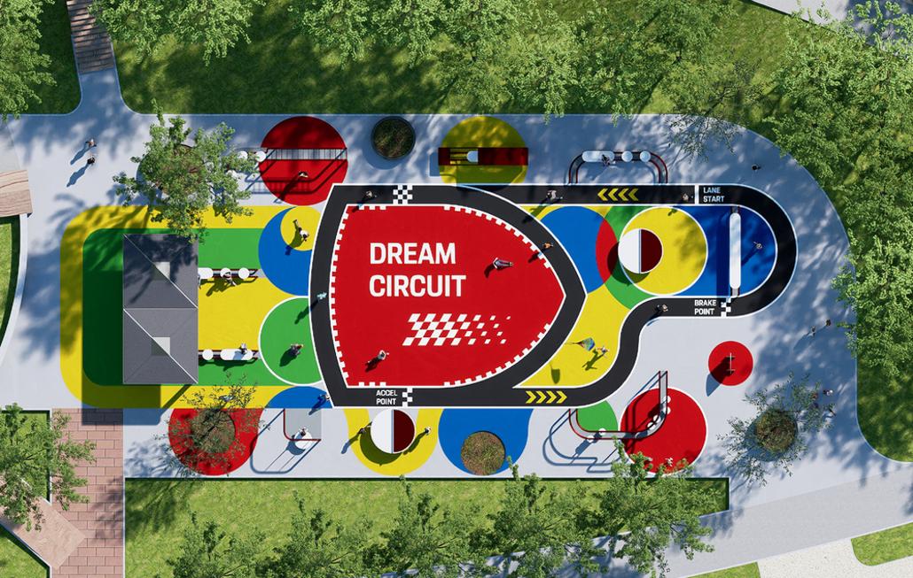 공간 구성의 핵심은 포르쉐 엠블럼 모양을 형상화한 중앙 광장과 이를 둘러싸는 순환형 운동 트랙이다. 트랙 주변에는 아이들의 신체 활동과 창의력을 자극하는 입체적인 조형물들이 배치돼 심미적 아름다움과 기능성을 모두 확보했다. 또한 야간 조명 시설을 강화해 시간에 구애받지 않고 시민들이 언제든 이용할 수 있는 개방형 공간으로 운영될 예정이다.