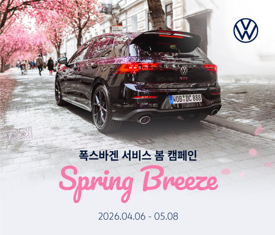 폭스바겐코리아가 본격적인 나들이 시즌을 앞두고 고객들의 안전하고 쾌적한 드라이빙을 지원하기 위해 ‘2026 Spring Breeze’ 폭스바겐 서비스 봄 캠페인을 진행한다. 이번 캠페인은 4월 6일부터 오는 5월 8일까지 약 한 달간 전국 폭스바겐 공식 서비스센터에서 실시된다.